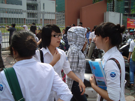 Theo ghi nhận của phóng viên Gia đình&Xã hội, đa số thí sinh đều cho rằng đề dài với nhiều câu hỏi, đặc biệt những thí sinh ban A, ban D gặp không ít khó khăn. Thí sinh Hoàng Thế Quyền cho biết: “Đề thi quá dài, khiến em khá lúng túng trong việc lựa chọn câu nào làm trước, câu nào làm sau. Em học ban A nên gặp khó khăn. Em nghĩ, với bài thi của mình để đạt được điểm 5 cũng là hài lòng rồi”.