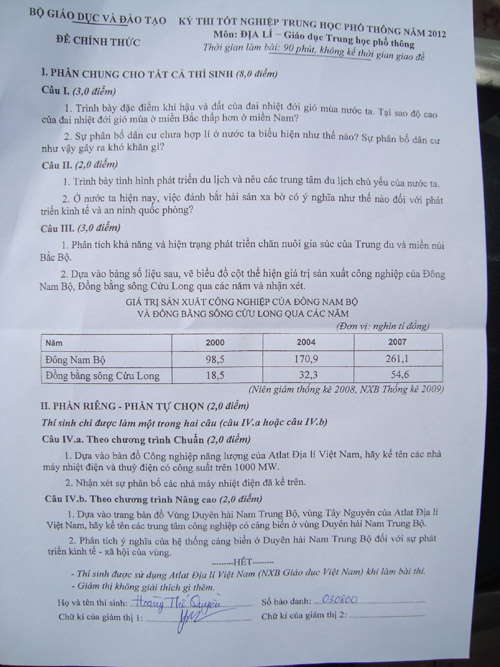 ![]() Đề thi môn Địa lí |