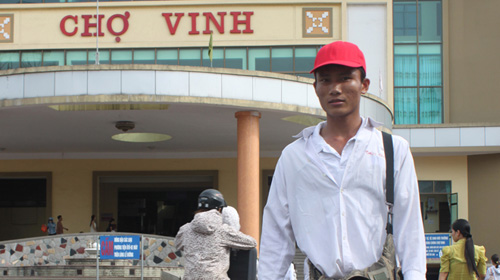 Chiều 7/7, tôi tìm gặp Ngô Văn Thuận trước cổng chợ Vinh, TP Vinh. Mới về quê một hôm, Thuận đã vào chợ Vinh tìm việc làm.