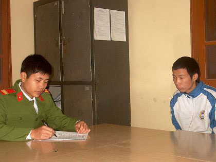 ![]() Đối tượng Nguyễn Tiến Mạnh tại cơ quan công an |