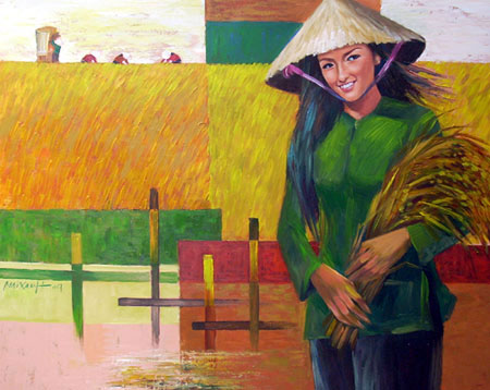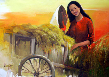 "Tôi vui mừng và ngạc nhiên khi được ngắm chính mình trong những bức tranh do các họa sĩ vẽ. Đã nhiều lần tôi khoác lên mình trang phục áo bà ba, hay áo dài cổ xưa nhưng để trực tiếp cầm những bó mạ để cấy hay gánh những bó lúa nặng trĩu, thậm chí kéo xe trở lúa ở cánh đồng quê thì tôi chưa được một lần làm. Những bức tranh ngoài tính nghệ thuật còn "nhắc nhở" tôi phải có những hành động cụ thể, gần gũi hơn nữa với người nông dân trong thời gian tới" Mai Phương Thúy nói.