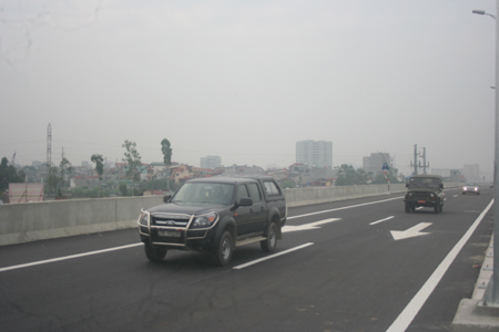 Những chiếc xe đầu tiên xuống đường dẫn từ đường trên cao vừa được thông xe |