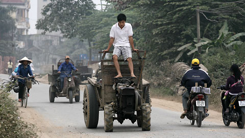 Vào lúc 11h30’ trưa 18/11, trên đoạn đường từ Ba La đi Vân Đình (Hà Nội), một thanh niên ngang nhiên đứng trên vô lăng điều khiển xe công nông khiến người đi đường khiếp vía.