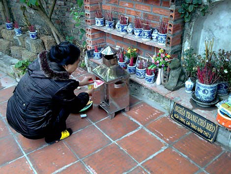 Chôn cất mèo và ngày ngày tới thắp hương, tưởng nhớ đặc biệt là trong những ngày rằm, lễ, Tết cũng là một cách thể hiện tình yêu với mèo rất nhân văn. |