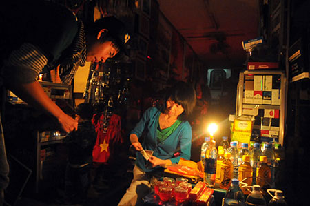 Các hàng quán, gia chủ cũng lọ mọ giao dịch với khách bằng ánh sáng từ ngọn nến. |