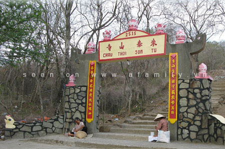 Cổng lên chùa Châu Thới Sơn. |