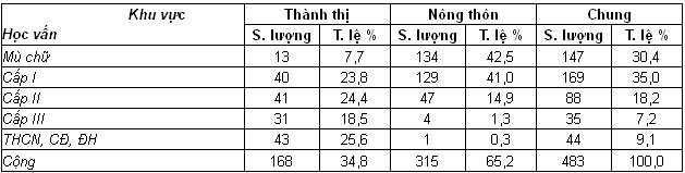Đáng lưu ý là tỷ lệ NCT còn mù chữ ở khu vực thành thị là 7,7%, ở khu vực nông thôn có tỷ lệ cao tới 42,5%.