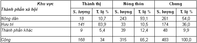 - Ở thành thị đa số người cao tuổi là cán bộ công chức nghỉ hưu (83,9%) chỉ có 10,7% người cao tuổi ở thành thị là nông dân.