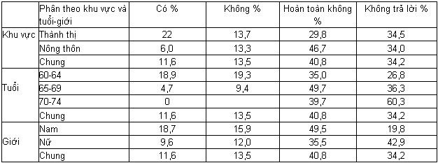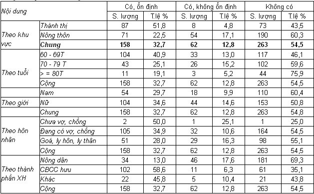 - Có tới 96,3% người cao tuổi là nông dân không có quỹ chi tiêu riêng và 35,1% là cán bộ công chức nghỉ hưu không có quỹ chi tiêu riêng.