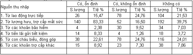 - 39,75% người cao tuổi ở Hà Tây có nguồn thu nhập từ lương hưu, trợ cấp mất sức.