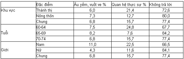 - 12,7% người cao tuổi ở khu vực nông thôn có quan hệ tình dục thực sự, 8,9% người cao tuổi ở khu vực này có quan hệ tình dục nhưng hạn chế (vì bất lực).