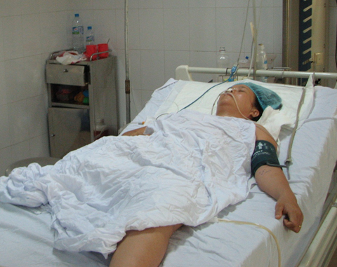 Trưa 13/8, PV Báo GĐ&XH đến thăm cô giáo Trần Thị Thảo - nạn nhân được đưa từ Hà Tĩnh ra Hà Nội cấp cứu bằng trực thăng tại Khoa Hồi sức cấp cứu, Bệnh viện 108. Mặc dù đã qua cơn nguy kịch nhưng một nửa xương đùi trên của chị Thảo buộc phải cắt vì vết thương quá nặng. Chị Thảo liên tục khóc ngất khi biết sự thật này.