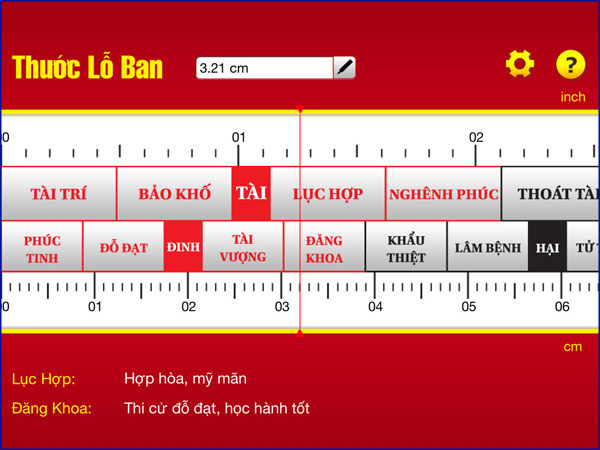 Trên thước lỗ ban online được chia làm những vạch có màu đỏ và màu đen. Khi đo nếu kích thước rơi vào vạch đỏ là tốt và nếu rơi vào vạch đen tức là xấu.