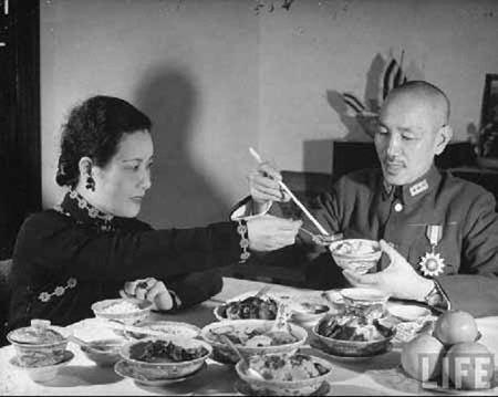 Ba chị em họ Tống và Tưởng Giới Thạch trong một bức ảnh chụp chung. |
