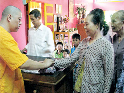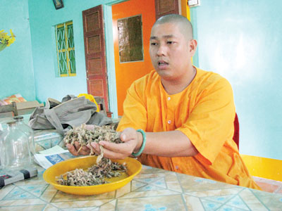 Suốt từ sớm đến tối, đại sảnh của chùa đón tiếp hàng trăm lượt bệnh nhân đến đợi khám và bốc thuốc về uống. “Mỗi ngày tôi phải lo bốc khoảng 500 thang thuốc miễn phí cho người nghèo quanh đây” – nhà sư tâm sự.