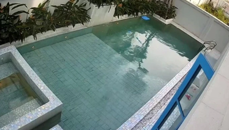 Bể bơi nơi 2 cháu gặp nạn (Ảnh cắt từ camera an ninh căn nghỉ dưỡng).