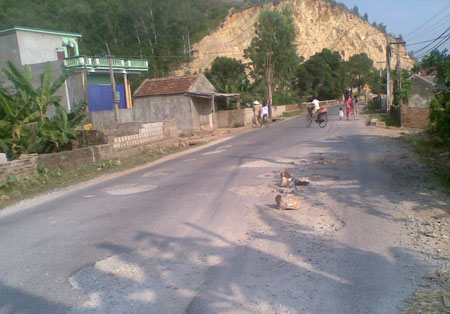 Đường 508 vừa làm xong đã bong tróc. |