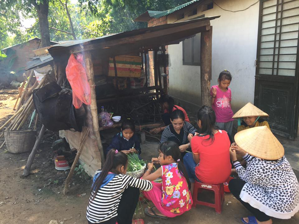 Hôm chúng tôi đến Tổ ấm Vĩnh Sơn cũng là ngày cuối tuần. Được nghỉ, không nề hà đường sá xa xôi các em như A Huyên, A Nương, Y Giêm… đều trở về nhà. Trong khung cảnh đầm ấm của một gia đình, các em cho biết, những ngày cuối tuần nếu không có việc bận thì đều về tổ ấm. Về để quây quần, để giúp các Sơ trông các em và đi nương đi rẫy để tạo thêm nguồn thu.
