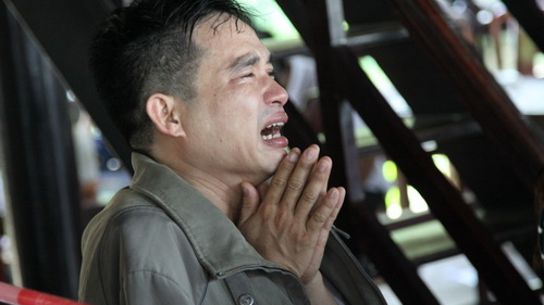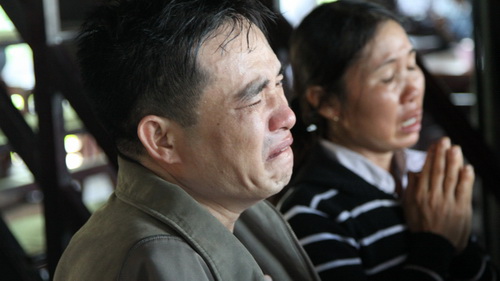 Người thân một gia đình Trung Quốc đã khóc nấc khi nhận ra xác người nhà. Ảnh: Hà Mi (TTO) |