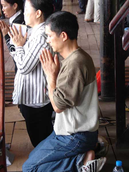 Ông Quách Lương Tài đang cầu siêu cho vợ con. Ảnh: P.Dũng (NLĐ) |
