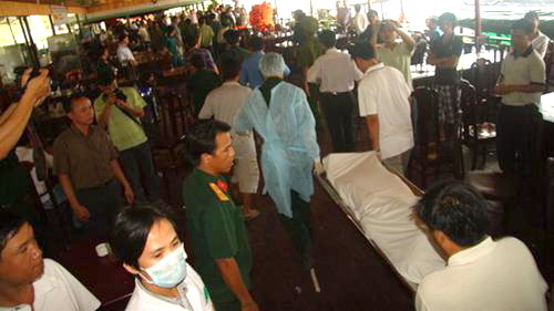Tại hiện trường, một không khí ảm đạm, đau thương bao trùm vớisự vật vã và những tiếng khóc ngất của người nhà khi nhận thi thể của những người thân mình.