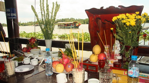 Bàn thờ được lập ngay nhà hàng Dìn Ký. Ảnh: Viễn Sự (TTO) |