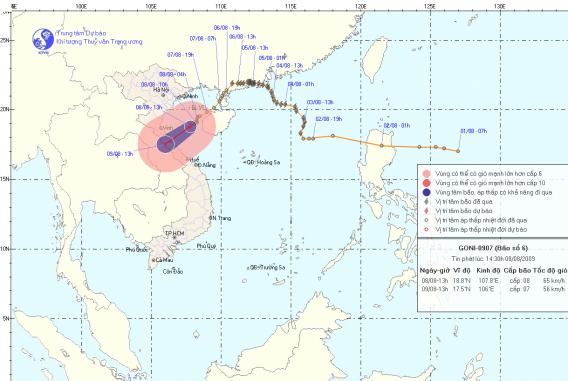 Theo bản tin phát lúc 14h30 của TT KTTV TƯ, hồi 13h ngày 8/8/2009, vị trí tâm bão ở vào khoảng 18,8 độ Vĩ Bắc; 107,8 Kinh Đông, cách bờ biển Nghệ An - Quảng Bình khoảng 170 km về phía Đông. Sức gió mạnh nhất vùng gần tâm bão mạnh cấp 8 (tức là từ 62 đến 74 km một giờ), giật cấp 9, cấp 10.