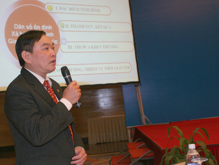 Báo cáo cũng đưa ra phương hướng, nhiệm vụ công tác DS-KHHGĐ năm 2012 với mục tiêu là chủ động duy trì mức sinh thấp hợp lý; khống chế tốc độ tăng nhanh tỷ số giới tính khi sinh; nâng cao chất lượng dân số về thể chất, đáp ứng nguồn nhân lực chất lượng cao phục vụ sự nghiệp công nghiệp hoá, hiện đại hoá và sự phát triển nhanh, bền vững của đất nước. |