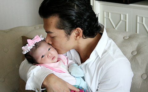 | Và hình ảnh một ông bố hiền khô ngoài đời: "Tôi sẽ mang cái cup vừa được lĩnh về đưa cho con gái yêu của tôi giữ giùm". |