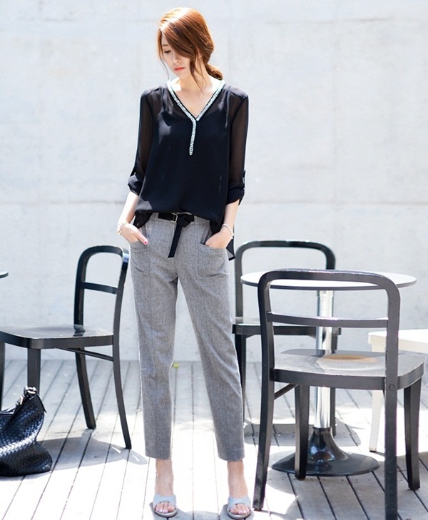 Một chiếc quần tông trầm kết đôi cùng áo màu trung tính sẽ mang đến sự trang nhã cho set đồ. Điểm nhấn phụ kiện với túi xách, giày, mũ hay thắt lưng đơn sắc, thiết kế đơn giản là sự bổ sung thông minh đề mang đến sự hoàn hảo cho bộ cánh. Đến văn phòng cùng set đồ đơn giản này, bạn sẽ sở hữu vẻ ngoài hút ánh nhìn, nhưng vẫn giữ lại được nét trang nhã và thanh lịch cần có.