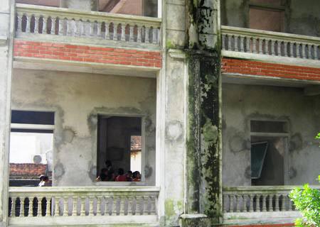 Phòng học xây năm 2009 chưa xong nhưng học sinh vẫn phải học. Ảnh: Y.Bình |