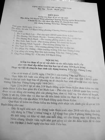 Trước việc thuê địa điểm 319 Bạch Đằng làm điểm học tạm cho hơn 400 học sinh Trường Tiểu học Thăng Long, ông Ngô Trí Nam, Phó trưởng phòng GD&ĐT quận Hoàn Kiếm cho biết: “Tìm địa điểm di dời cho 10 lớp của Trường tiểu học Thăng Long hết sức khó khăn. Trước tiên là tìm đến các trường công lập trong quận, nhưng các trường hiện còn rất ít phòng trống, sau đó mới tính đến vị trí thuê địa điểm 319 Bạch Đằng. Trong bối cảnh như vậy, tìm được một điểm có môi trường sư phạm thì rất khó. Trước những băn khoăn, lo lắng của phụ huynh, đến thời điểm này có thể khẳng định là chúng tôi sẽ yêu cầu dừng không tính đến việc thuê nhà 319 Bạch Đằng làm lớp học như dự kiến nữa. Thời gian không còn nhiều, cũng mong rằng phụ huynh chia sẻ với nhà trường, nếu tìm được địa điểm nào phù hợp hơn để thay đổi, bây giờ vẫn còn kịp.