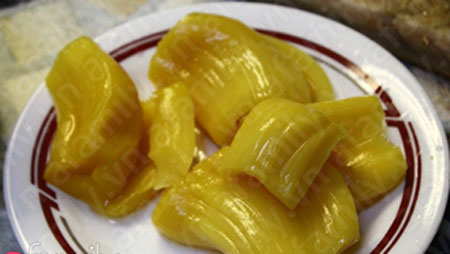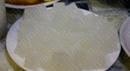 Thạch dừa khui bỏ hộp, đổ ra đĩa. |