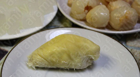 Sầu riêng tách lấy múi, bỏ hạt, để ra đĩa. |