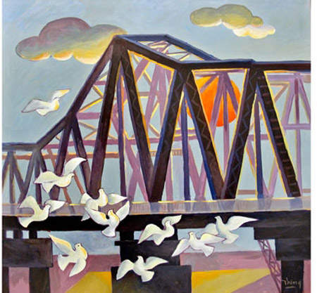 Chiều, Hà Nội đầy gió và gió trên cầu lại càng mát. Tôi thích đứng ở đây hóng gió và mỉm cười với chính mình. |