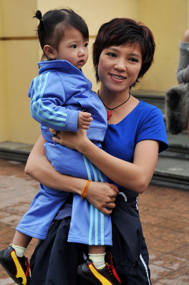 Hồng Hà và con gái Lê An hơn 2 tuổi. |