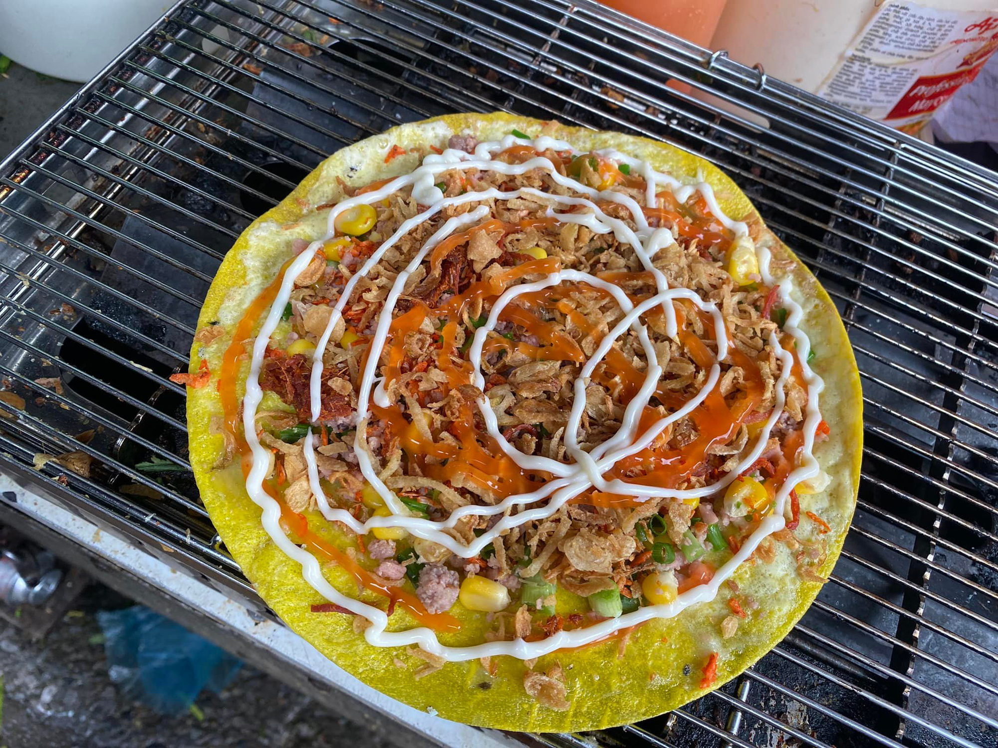 Bánh tráng cuộn nướng là một trong các món đồ ăn vặt được chị Liên tranh thủ làm ngoài giờ hành chính để tăng thêm thu nhập, trang trải chi tiêu gia đình giữa Thủ đô. Ảnh: NVCC
