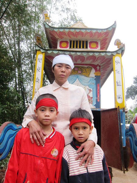 Chị Hồ Thị Điểm (mẹ Tèo) nức nở: “Khổ quá anh ạ. Gia đình giờ tan nát. Năm 2002, chúng tôi lấy nhau rồi được 2 mặt con. Cả hai không học hành, không nghề nghiệp. Nhà tôi đi làm thuê sa vào rượu chè, hành hạ vợ con. Tôi sợ quá, gửi đứa thứ hai cho bà ngoại trốn đi Nam, còn đứa đầu thì ra bãi tha ma… Giờ tôi muốn đoàn tụ gia đình mà khó quá. Trời ơi!”.