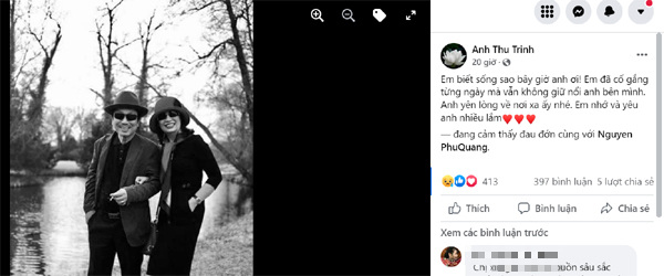 Vợ nhạc sĩ Phú Quang, chị Anh Thư đã không kìm nén được những dòng cảm xúc khi phải chia tay chồng. Chị nghẹn ngào viết: "Em biết sống sao bây giờ anh ơi! Em đã cố gắng từng ngày mà vẫn không giữ nổi anh bên mình. Anh yên lòng về nơi xa ấy nhé. Em nhớ và yêu anh nhiều lắm".