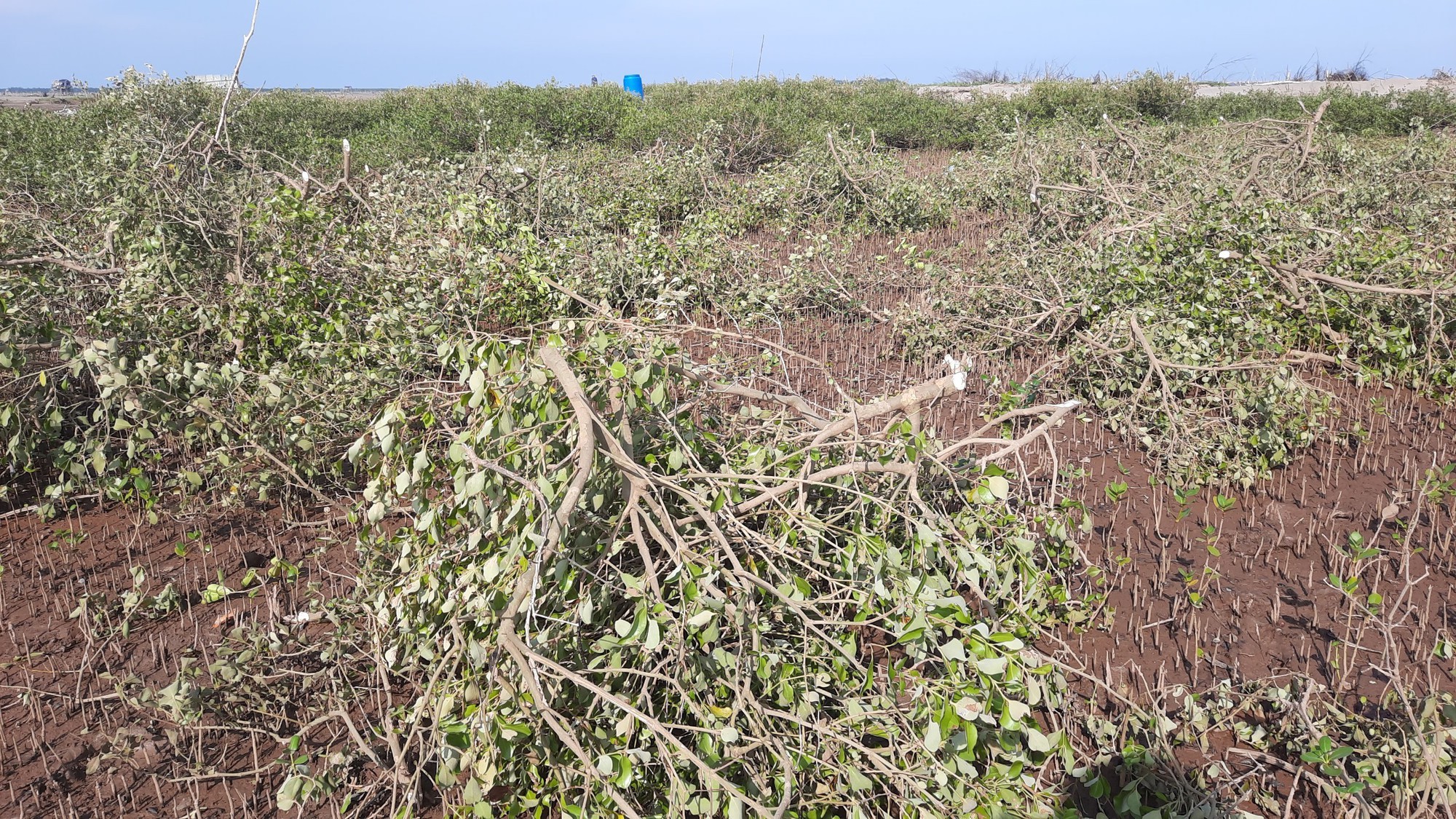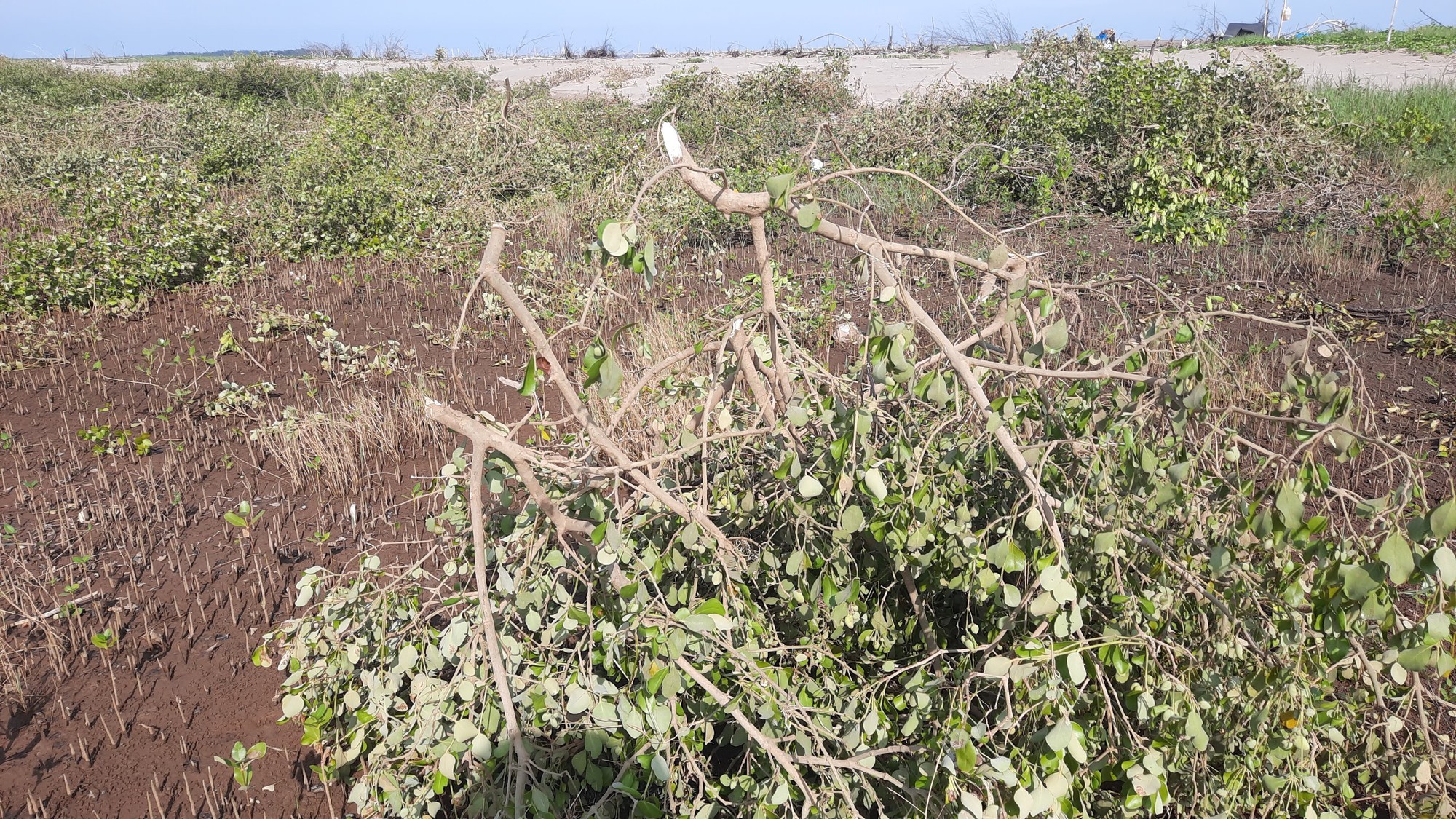 Lần này, đoàn kiểm tra phát hiện diện tích cây Mắm bị chặt phá, qua kiểm đếm số lượng cây Mắm là 50 cây, diện tích khoảng 240m2 (15m x 16m). Cùng với các vây bả và cọc tre (loại dùng để cắm cọc vây) chăng ngang khu vực cồn cát cao theo hướng từ phía trong ra phía ngoài biển, dài khoảng 100m.
