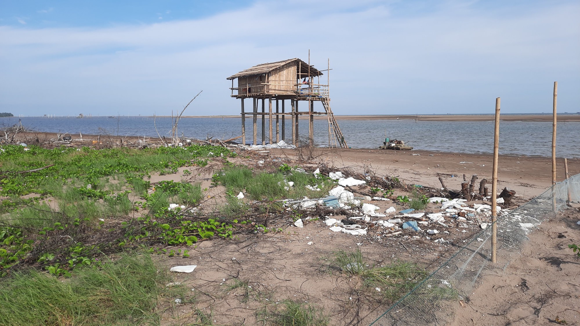 Chòi canh coi được dựng mới hoàn toàn vị trí mép ngoài của cồn cát cao, được dựng bằng 9 cột bê tông, cao khoảng 4 - 5m, diện tích khoảng trên 36m2.