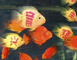 Giadinh.net - Cửa hàng Qingshiqiao ở Thành Đô, tỉnh Tứ Xuyên (Trung Quốc) đã nảy ra ý tưởng xăm bằng tia laser hình đèn lồng hoặc những ký tự tượng trưng cho sự may mắn lên các chú cá cảnh.