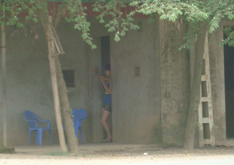 Vờ gật đầu, chủ quán cho người dẫn tôi vào trong một căn phòng sâu hun hút cách biệt hẳn với chỗ ngồi uống nước. Cửa vừa mở, mùi son phấn quện với mùi cơ thể sực nức xông ra đến ngột ngạt, hơn chục gái bán hoa ăn mặc khêu gợi ngồi la liệt trên ghế, cô nào cô nấy đều trong tư thế gợi tình để mời gọi khách, nhiều cô còn lao hẳn ra ôm chầm lấy khách rồi kéo tay vào phòng. Lấy lý do nghe điện thoại, tôi đi ngược trở ra phía đầu quán, nói khó là có việc gấp rồi “bo” cho tay chủ quán 100.000 đồng để cho êm chuyện.
