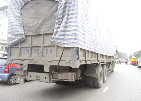 Chiếc xe đầy đất này tạo nên từng lớp bụi cuộn lên theo bánh xe khi lưu thông trên đường Nguyễn Trãi – Hà Đông. |