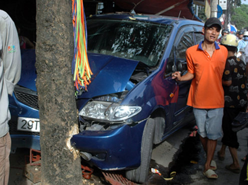 15h ngày 1/9, xe Mazda Premacy chạy với tốc độ cao theo hướng Đê La Thành - Láng Hạ. Khi đến gần số nhà 248, chiếc xe mất lái rồi đâm thẳng vào một gốc cây ven đường, khiến một người đang mua hàng bên đường bị thương.