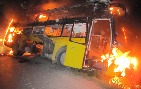 Xe khách bốc cháy, 40 hành khách thoát chết