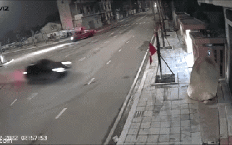 Camera an ninh gần đó đã ghi lại giây phút chiếc ô tô lao đi với tốc độ như tên bắn.