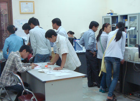 Thí sinh đến làm thủ tục đăng ký xét tuyển tại trường ĐH Thủy lợi. Ảnh: Q.Anh |