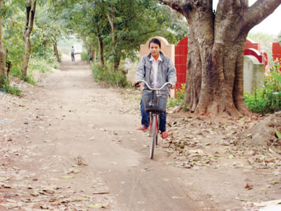 Muốn đi vào được xóm trọ này, người ta phải đi trên một con đường “dát” đầy bùn và bụi than. Mùa hè, những bụi than đen sì bay tứ tung theo gió vào tận từng phòng trọ bám đầy vào quần áo hoặc những vật dụng trong nhà. Mùa đông, con đường nhỏ chỉ đủ cho 3 chiếc xe máy cùng đi này lại nổi lên một “lớp áo” nhầy nhụa, đen đúa chẳng khác nào sình lầy trong rừng rậm U Minh. Đi hết con đường này phải băng qua hàng nghìn ngôi mộ thì mới vào được xóm trọ.