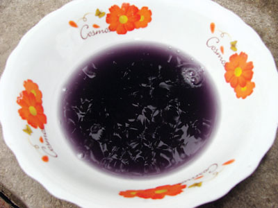 Nước sau khi lọc qua hai bể mà cho một vài giọt nước trà vào đã chuyển sang màu tím đậm. |